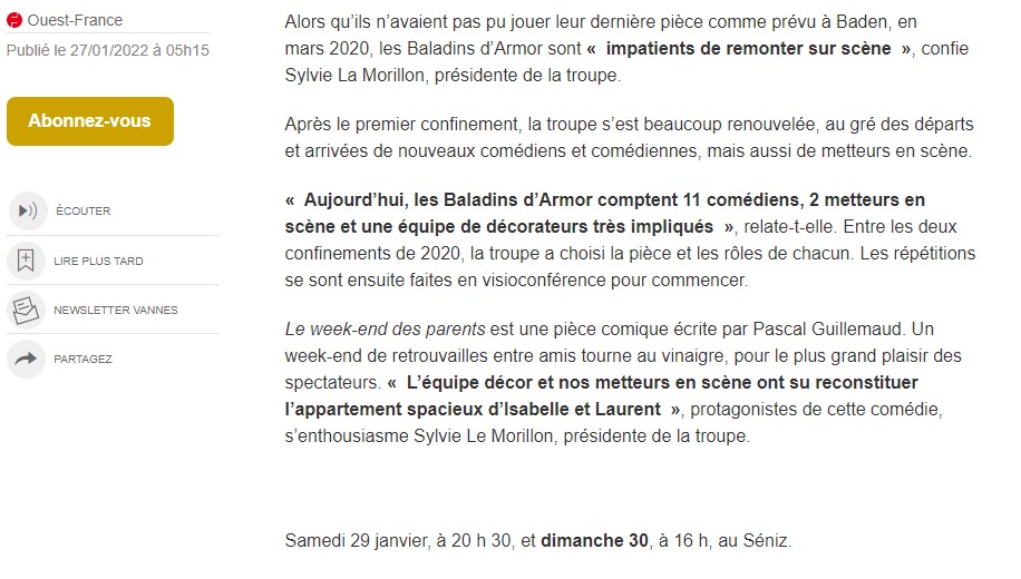 20180228 Belle prestation des comédiens des Baladins d’Armor – Ouest France